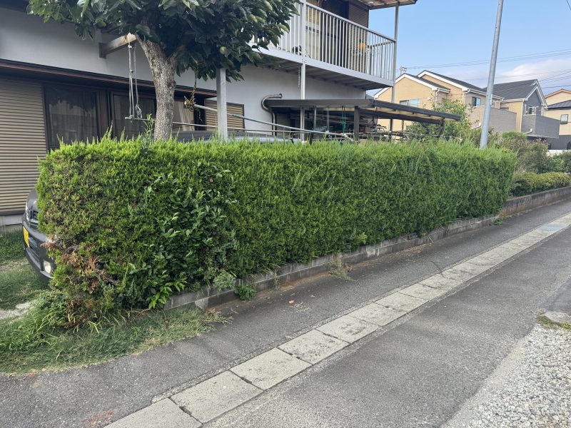 道路にはみ出してしまう植栽に、以前からお悩みをお持ちのお客様でした。